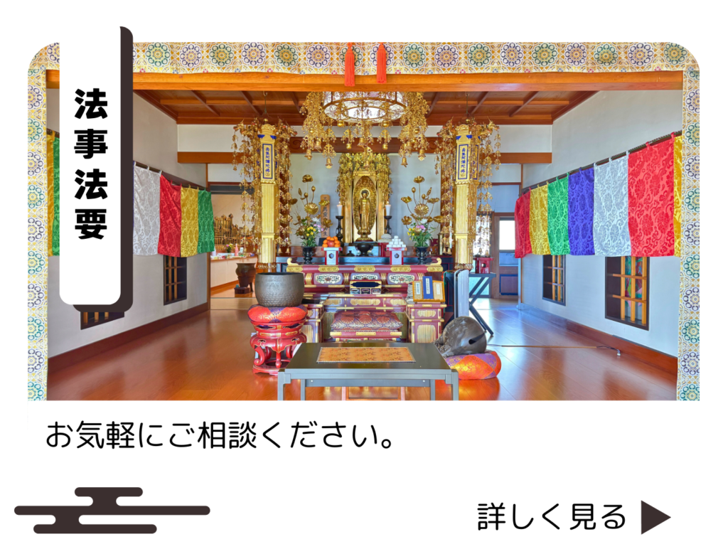 はじめまして。榮秀寺桑山宗隆でございます。本来お寺敷居高いもでなく、みなさまがお悩みなどを気軽にお話しに来られる場所でした。榮秀寺で入りやすいお寺、地域みなさまに安心していただけるお寺を目指しております。小さなお悩みでも構いません。是非、当ページよりご連絡ください。
